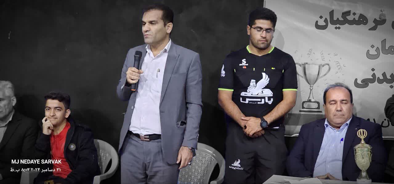 مسعود فرح بخش مدیر آموزش و پرورش شهرستان در حاشیه ی این بازی، گفت: این مسابقات با هدف حفظ سلامتی، شادابی، تحرک و افزایش روحیه ی همکاران فرهنگی و همچنین توجه بیشتر به امر ورزش، با همکاری معاونت پرورشی و تربیت بدنی و همچنین کارشناس تربیت بدنی برگزار گردید.وی افزود: این مسابقات با حضور ۱۲ تیم از مدارس مختلف شهرستان برگزار شد و در پایان تیم های مدارس آیت الله بروجردی و شهدای فرهنگی به فینال مسابقات راه یافتند.فرح بخش در پایان ضمن تقدیر و تشکر از تشریف فرمایی مسئولین شهرستان در این اختتامیه، و همچنین برگزار کنندگان این مسابقات، گفت: از تمامی کسانی که برای برگزاری این مسابقات تلاش و زحمت کشیده اند و این شرایط را به وجود آورده تا همکاران محترم ساعاتی از وقت خود را به ورزش، تفریح و در کنار هم بودن بگذرانند و همچنین مسئولین محترم شهرستان که حضور پیدا کردند، تشکر و قدردانی می کنم و امیدواریم که اینچنین مسابقاتی تدوام داشته باشد.گفتنی است که در پایان تیم مدرسه شهدای فرهنگی در ضربات پنالتی با شکست تیم حریف، قهرمان این مسابقات شد.